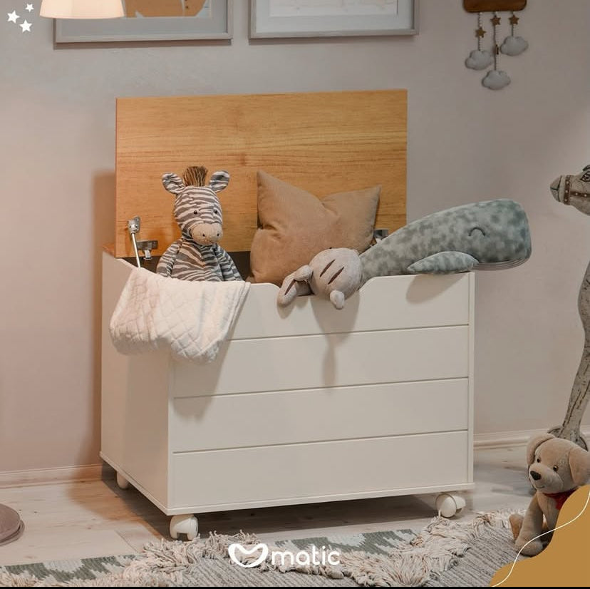 Para mantener bien organizados los artículos de tus hijos, te presentamos el Baúl de Juguetes. Este bonito baúl infantil está fabricado por Matic y aporta comodidad al día a día gracias a su gran espacio interior. Además tiene un bonito diseño para combinar perfectamente con el entorno de tu bebé.