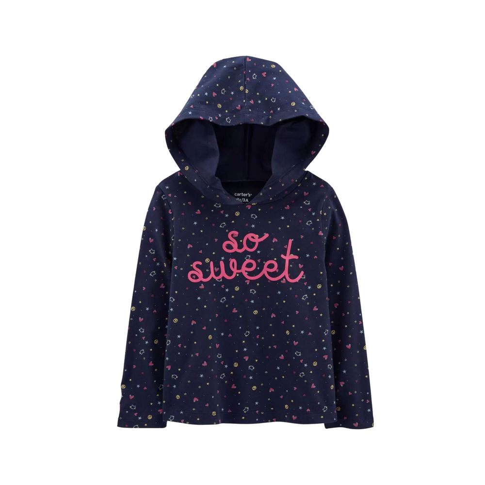 Descubra nuestra adorable blusa de mangas largas con capucha "So sweet" de Carter's para niña. Hecha de suave algodón, esta blusa ofrece comodidad y estilo. Perfecta para mantenerla abrigada y con un toque dulce en su guardarropa. ¡Ideal para las más pequeñas!
