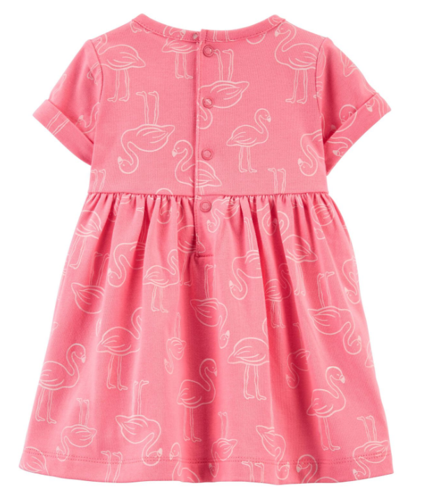 ¡Viste a tu niña con este adorable conjunto de Carter's! Incluye un romper a rayas y un vestido con diseños de flamencos. Hecho de algodón, es suave y cómodo para tu pequeña. Además, ¡viene con un cubre pañal para mayor comodidad! Perfecto para cualquier ocasión.