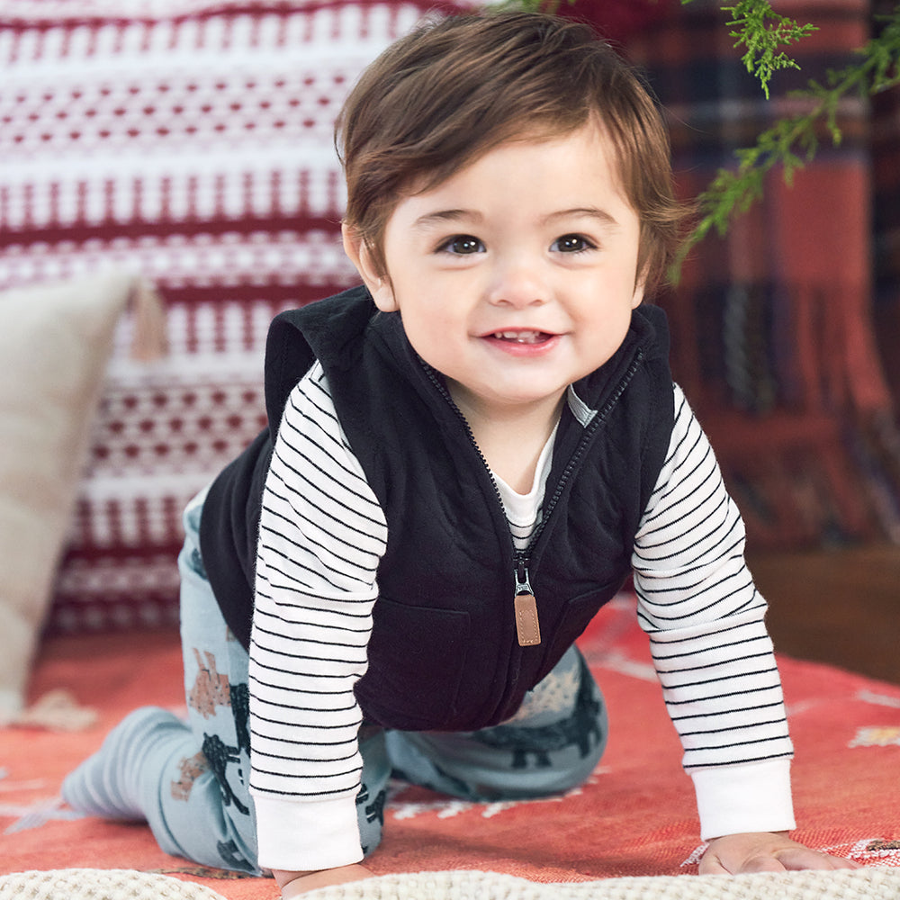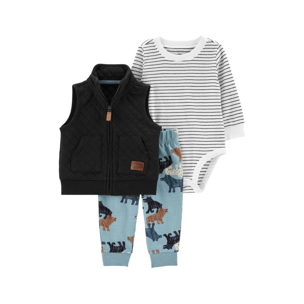 Este set de 3 piezas de Carter's incluye un chaleco, un body y un pantalón con un diseño de lobos que le agregará estilo a cualquier outfit. Hecho de algodón, es cómodo y duradero para tu pequeño. ¡Agrega este set a su guarda-ropa hoy mismo!
