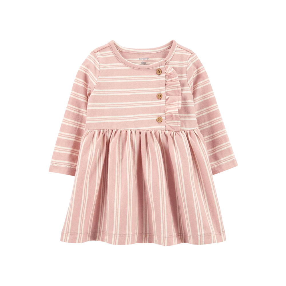Con este vestido a rayas con mangas largas de Carter's, tu pequeña se verá adorable y cómoda gracias a su tejido 100% algodón. Ideal para cualquier ocasión, este vestido será la elección perfecta para tu hija.