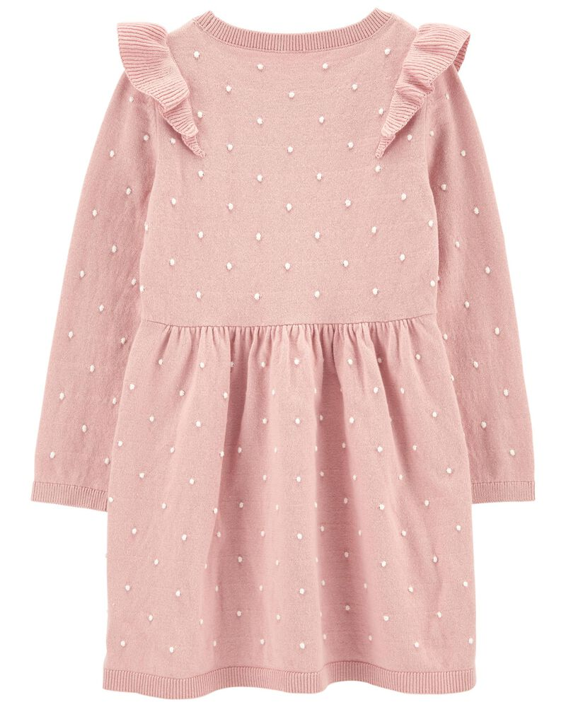 El vestido de mangas largas Carter's con volantes y motas es perfecto para tu pequeña niña. Con su delicado color rosado, este vestido le brindará comodidad y estilo a la vez. Mantén a tu hija abrigada y a la moda con este hermoso vestido.