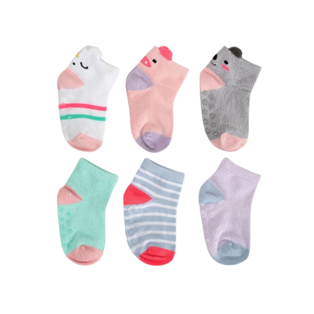¡Deja que tu pequeña camine con seguridad con el paquete de 6 pares de medias antideslizantes Cat & Jack! Con adorables colores y diseños, estas medias son perfectas para tu niña. Además, su diseño antideslizante asegura la estabilidad al caminar. ¡Haz que cada paso sea seguro y divertido!