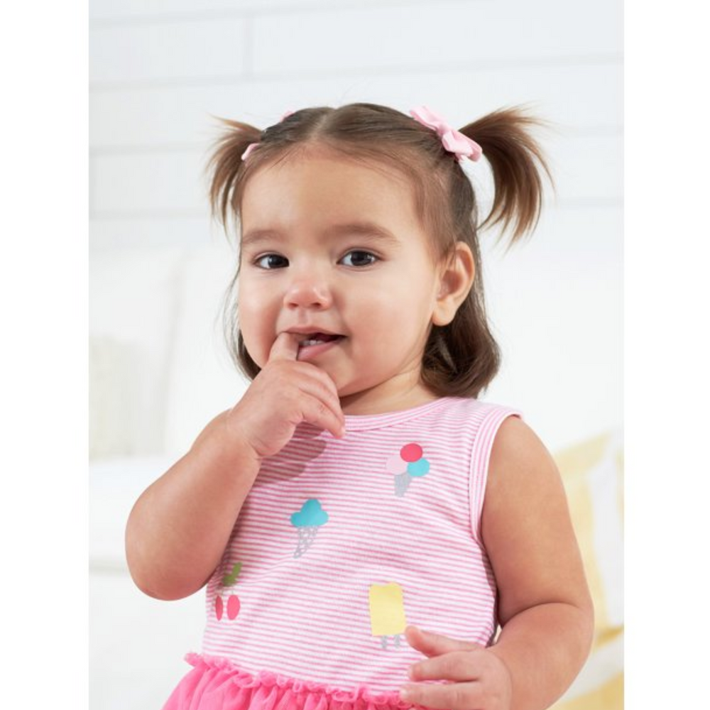 Este vestido de tul de Gerber es perfecto para niñas. Hecho de algodón, incluye un cubre pañal para mayor comodidad y estilo. Ideal para cualquier ocasión, mantendrá a tu pequeña cómoda y a la moda. ¡Hazla lucir adorable con este conjunto!
