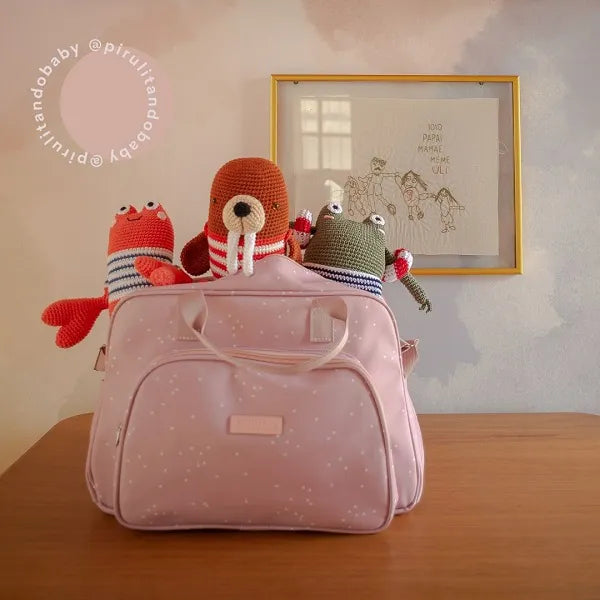 Limpia tu bolso Pirulitando Baby con un paño ligeramente húmedo, usando jabón neutro, no olvides pasarlo después con un paño seco y dejar secar a la sombra. No lo dejes en remojo, no lo metas en la lavadora/secadora y no lo dejes secar al sol, ¿ok? Para que tu bolso Pirulitando Baby quede espectacular, sigue correctamente las instrucciones de lavado que aparecen en la etiqueta de composición del bolso.