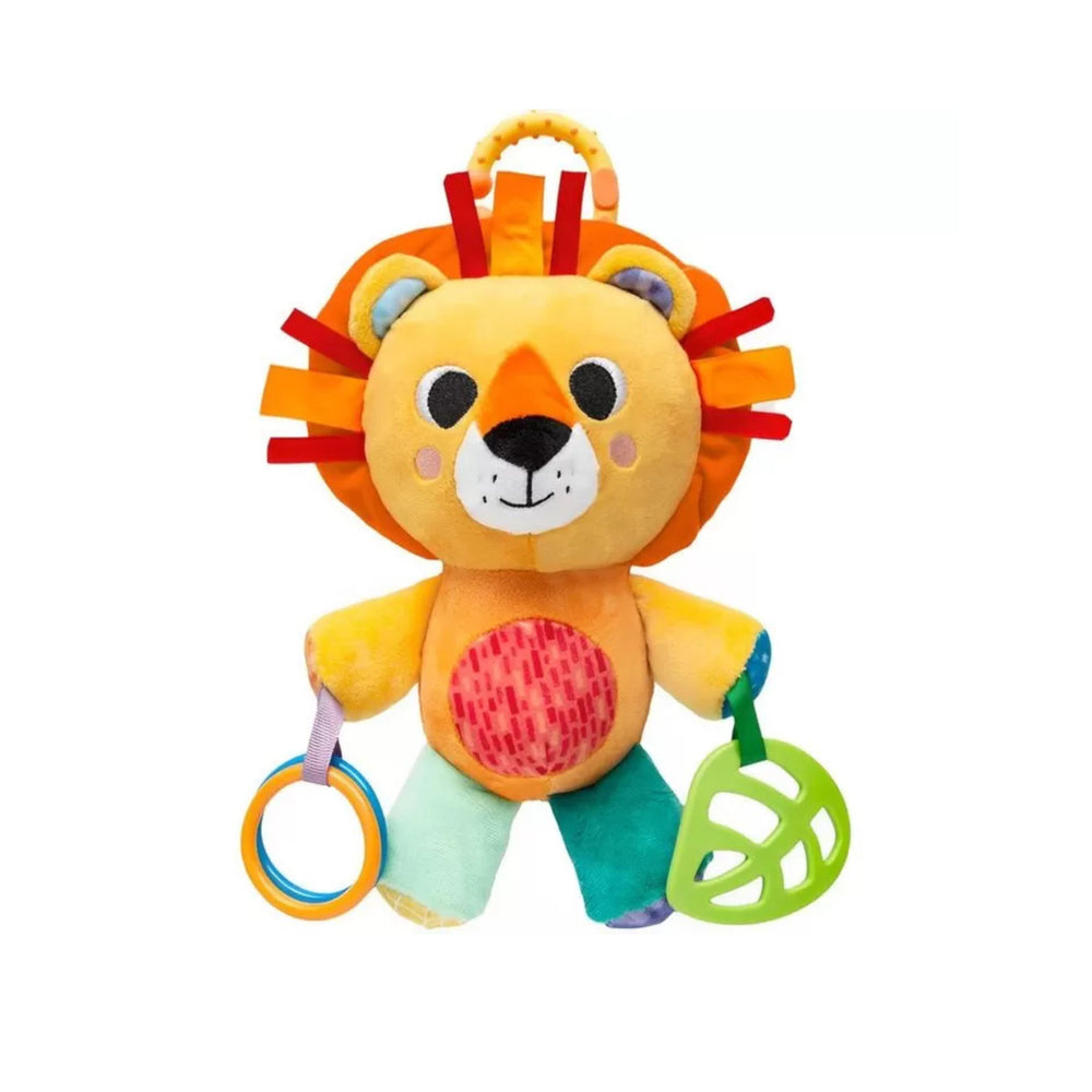 El Leon sonajero de Bubae Es ideal para entretener y desarrollar los sentidos del bebé. Con una bocina, un sonajero, un mordedor y colores vibrantes, estimula el tacto, el oído y la vista de los pequeños. Al tirar de la cuerda, vibra, haciendo que el juego sea aún más divertido.