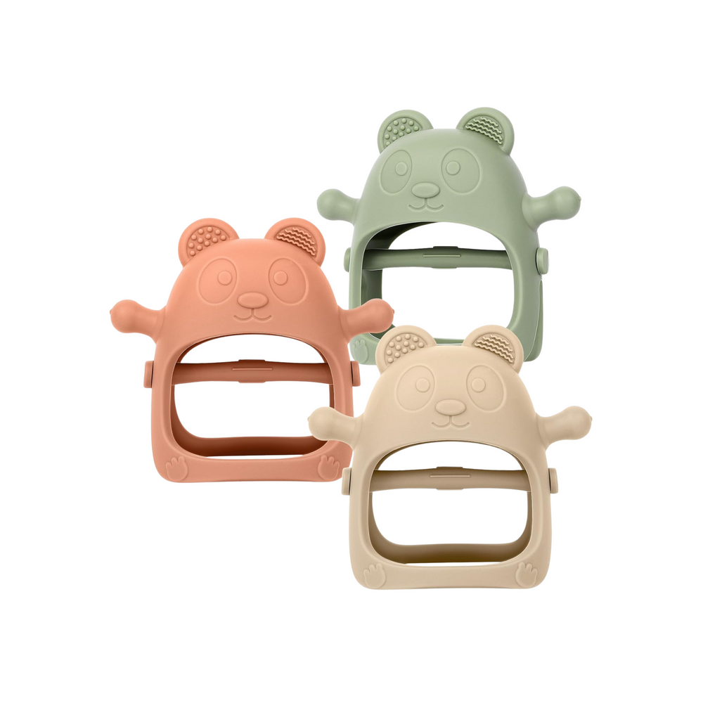 Los guantes de dentición de silicona suave se ajustan a las pequeñas manos de su bebé, y la barra interior proporciona un soporte de agarre adicional para el agarre de su bebé. Los dos lados imitan el diseño del pezón, lo que ayuda a calmar a los bebés quisquillosos y es un buen ayudante para la dentición de tu bebé.