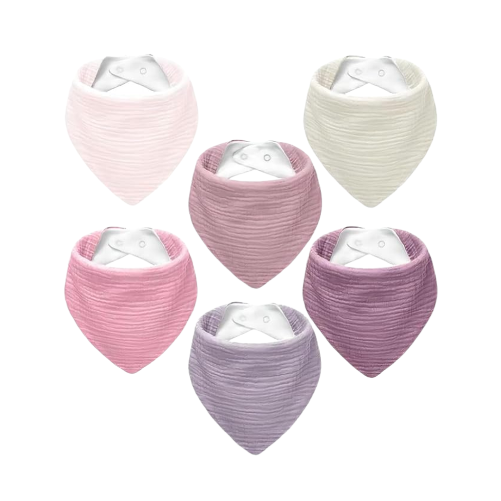 Estos baberos están diseñados para adaptarse perfectamente a la curva del cuello de un bebé, eliminando cualquier riesgo de estrangulamiento. Además, nuestra técnica de costura oculta garantiza que ningún hilo expuesto pueda dañar la delicada piel de tu bebé.
