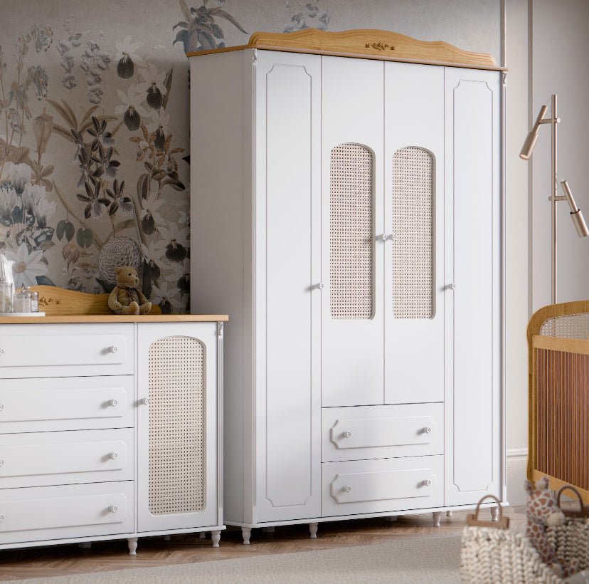 Añade un toque de elegancia y encanto al espacio de tu hijo con el Ropero de 4 Puertas Provence, una pieza que combina calidad, estilo y practicidad, transformando el ambiente en un lugar especial y organizado.